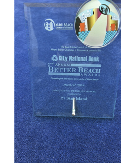 We also won the Miami Beach Chamber of Commerce Best Innovative Design Award.